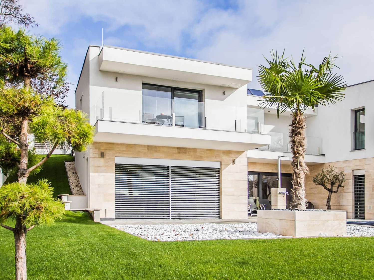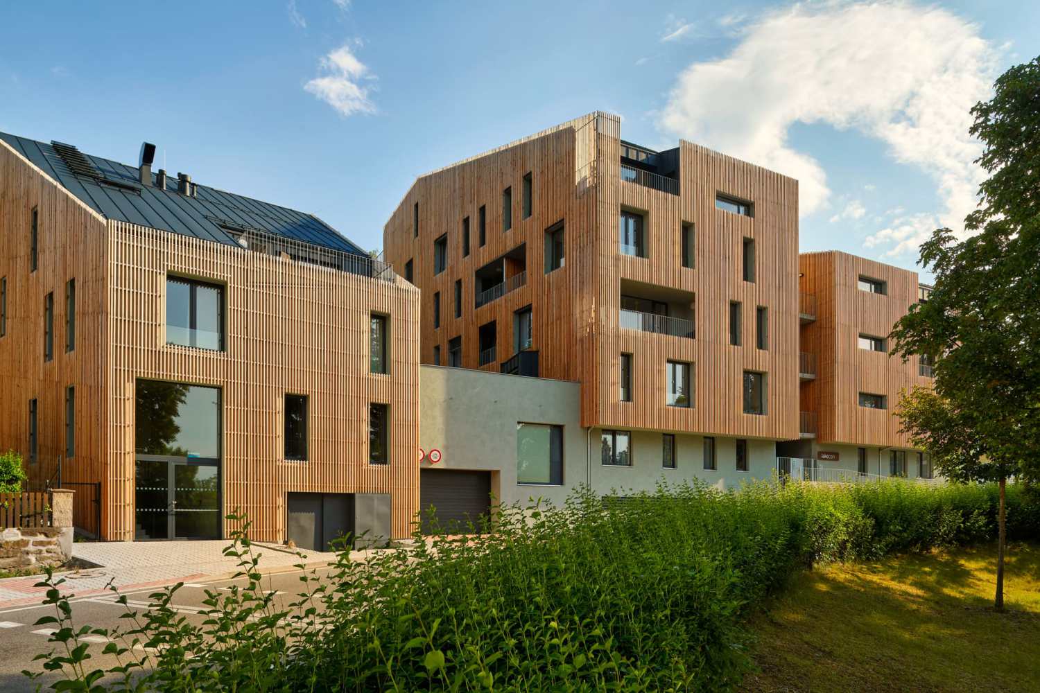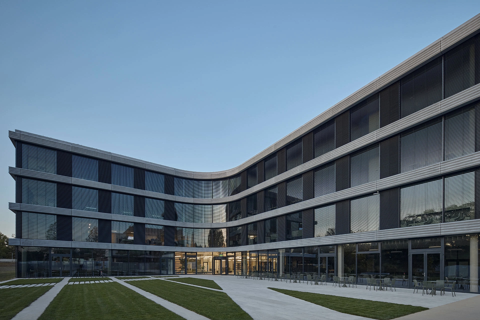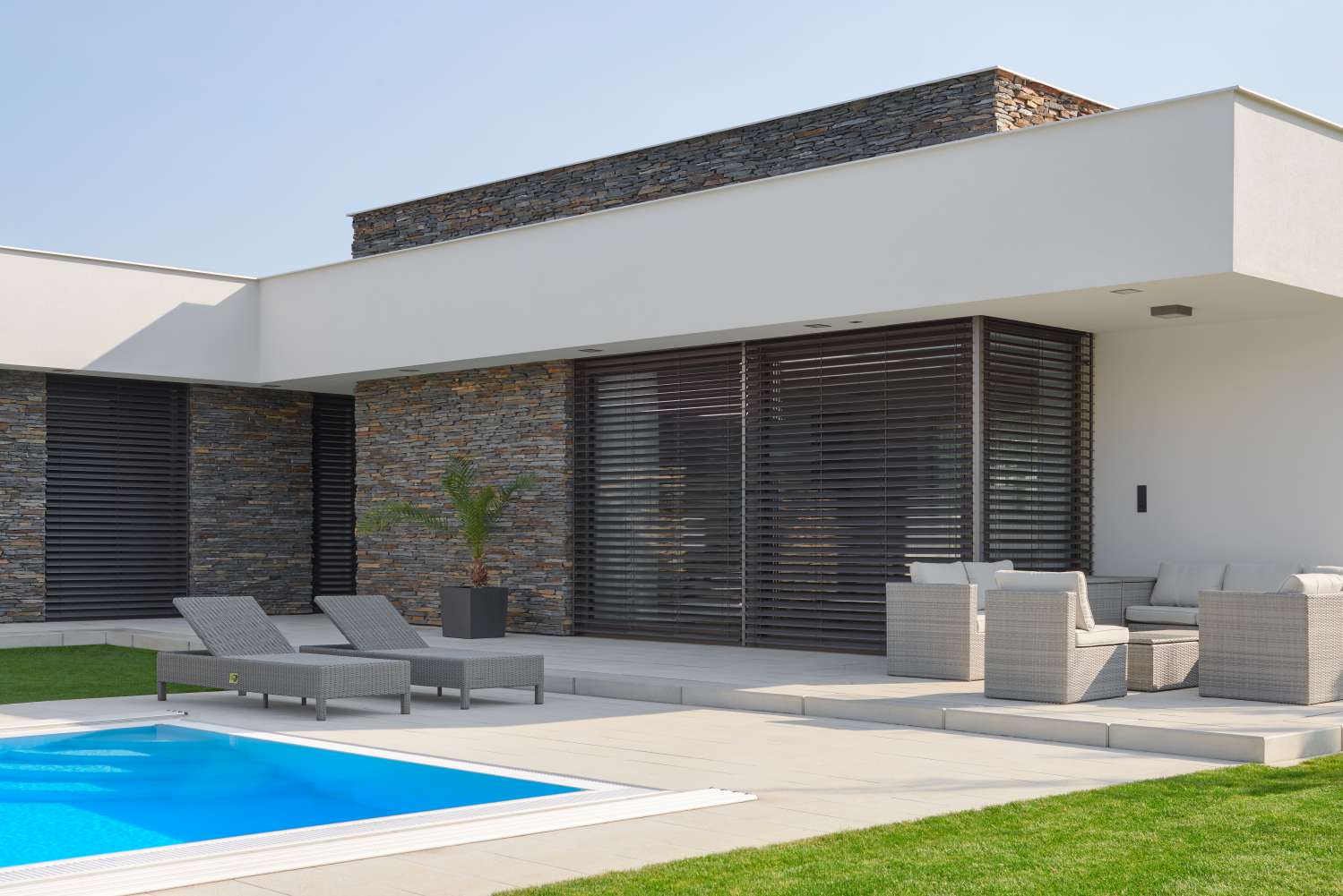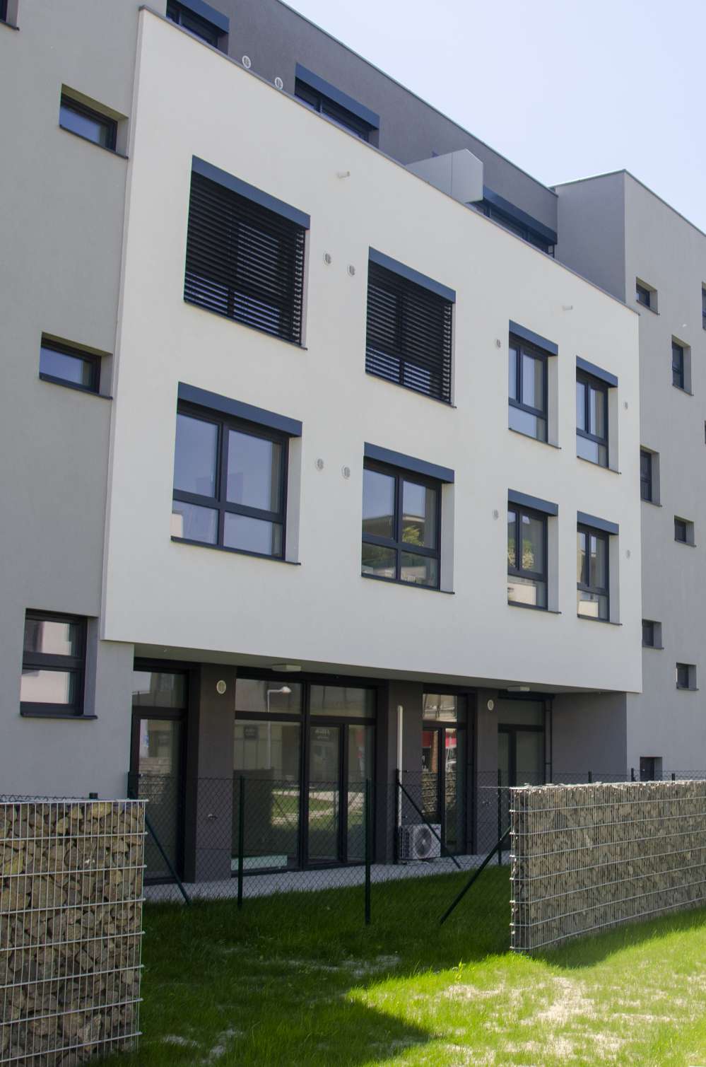 a zsaluziák domináns arculata az épületen, ezért dönt a letisztult