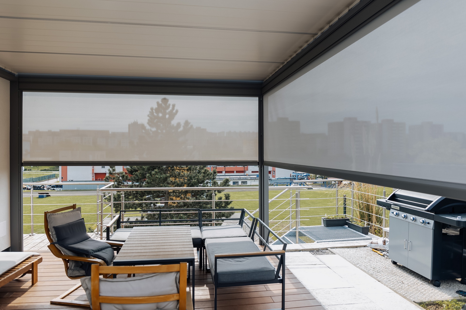 dizájnú kültéri napháló mellett. A kültéri árnyékolás kombinálható – az